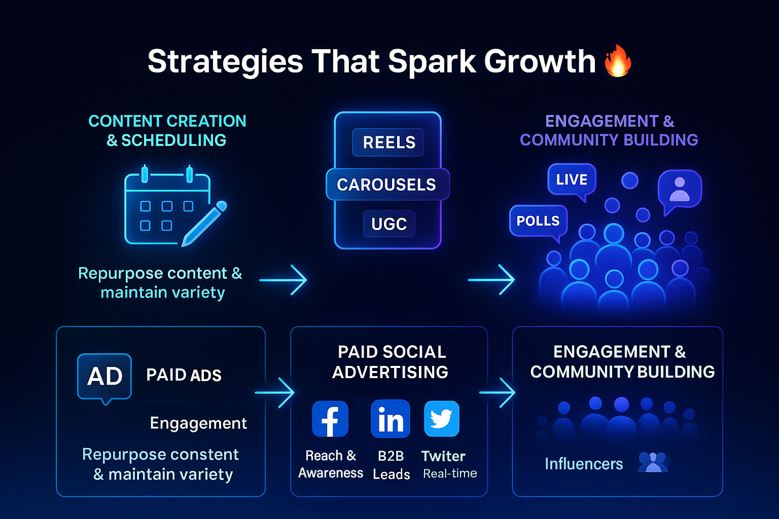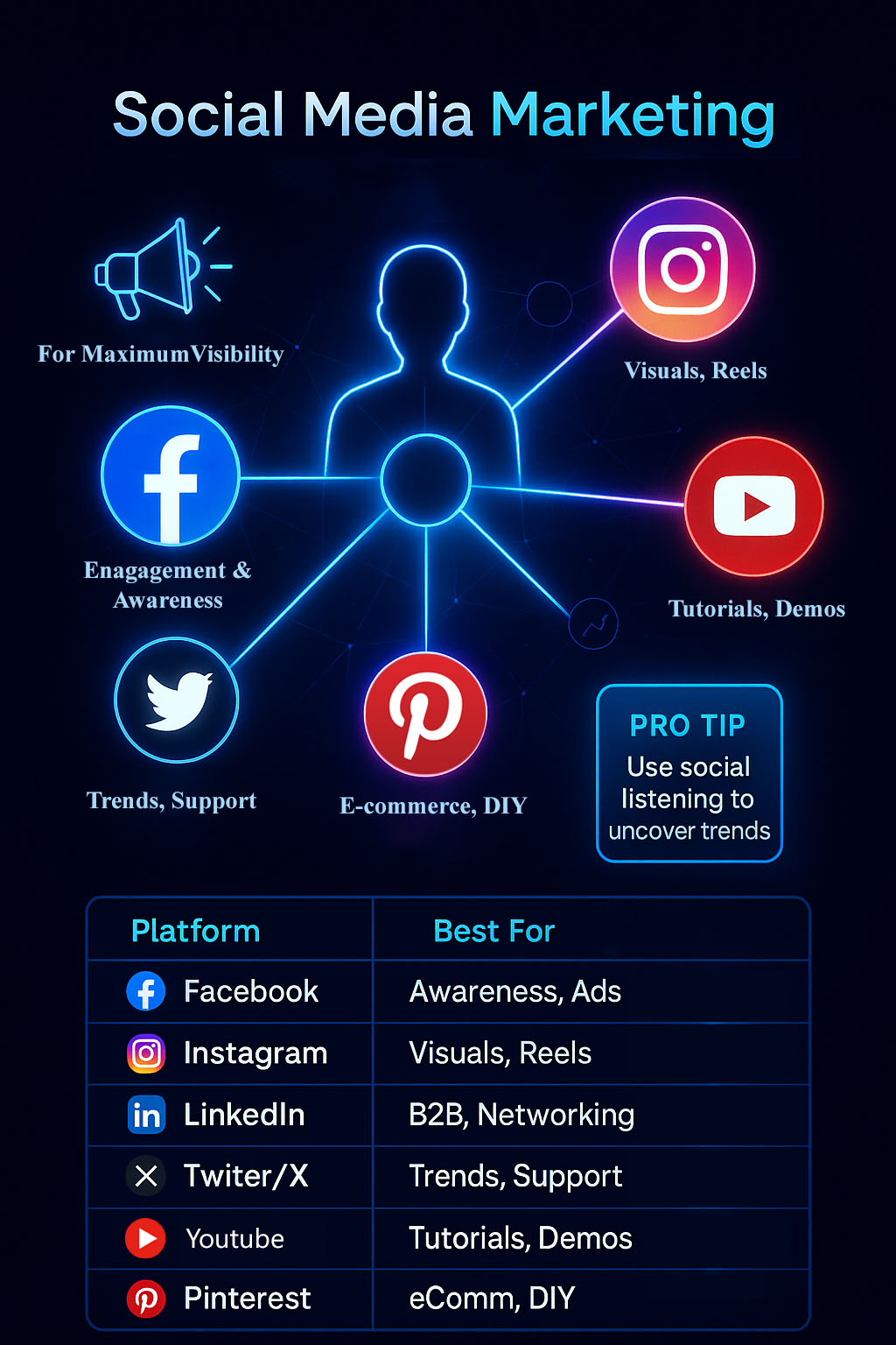 Engaging with your audience on platforms like Instagram, Facebook, LinkedIn, and Twitter.